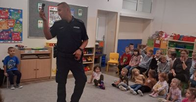 • Dzielnicowy uczy przedszkolaków z Michowa zasad bezpieczeństwa